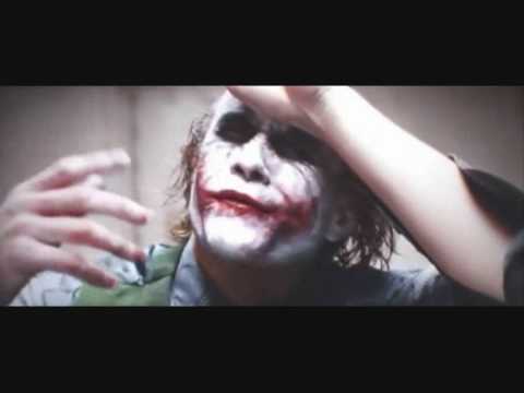 Camera angles are used to influence the audience further, showing the preferred point of view of the scene. Straight angles are used throughout at the eye level of the audience, allowing them to integrate themselves within the scene. High angles are used to demonstrate the physical power held by the characters of Gordon and Batman. Throughout the scene, Batman is viewed from a slightly higher angle than the Joker, telling the audience that he appears to be dominant. The Joker is viewed as inferior, through the use of low angles. The main example of this is when Batman is beating the Joker for answers (01:26:47 – 01:26:59). The audience is positioned on Batman’s right, with his punching hand, limiting the field of vision, looking down upon the Joker, and then switched to a reaction shot of Batman’s face, following the movements of the Joker. These camera angles conflict with the actions and motives of the characters. Batman appears physically dominant, yet the Joker is mentally in control. He dominates the scene, causing Batman to play his game and lose his temper. There is one camera angle that seems out of place within this sequence. At 01:26:11, a tilted camera shot shows the Joker about to rise from the table. This is the only shot like this within the scene, causing the audience to feel disorientated. However, this shot could be seen as at the climax of the action within the scene. Batman has finally lost his temper, causing him to act violently, just as the Joker wanted him to.